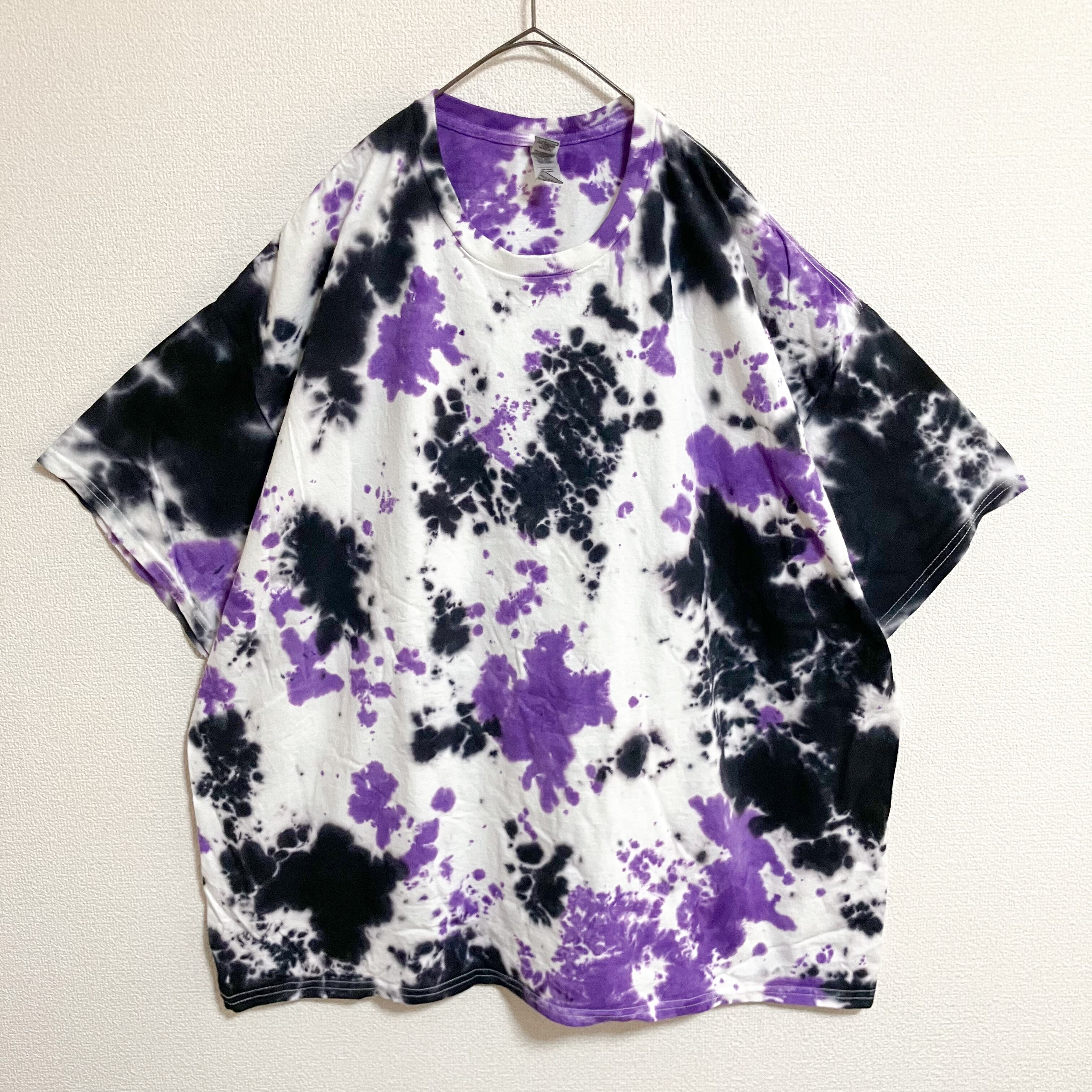 GILDAN タイダイ オーバーサイズTシャツ3XL 総柄 白紫黒 ビッグサイズ