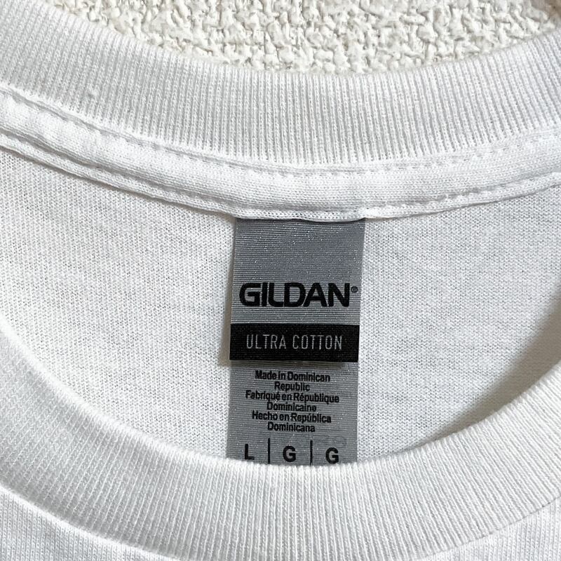 GILDAN 新品 ホワイト 半袖TシャツL ロゴ刺繍 ブランド 白 ストリート