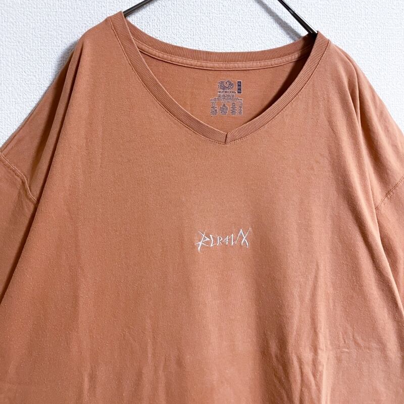 FRUIT OF THE LOOM XL Vネック半袖Tシャツ オレンジ ロゴ