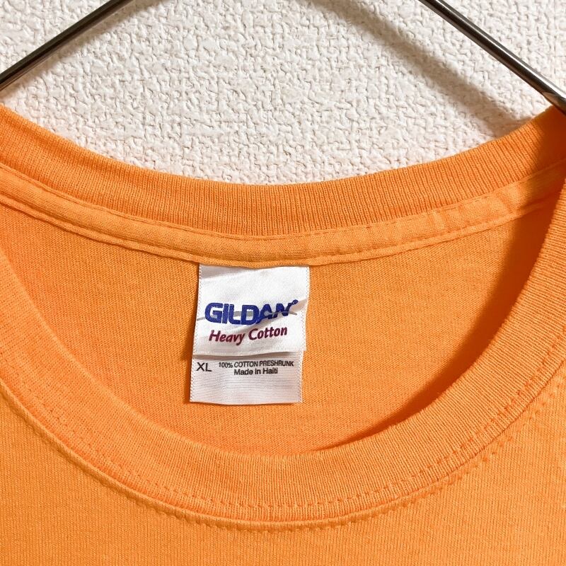 GILDAN オレンジ 半袖TシャツXL 刺繍デザイン ロゴ ストリート 春夏物