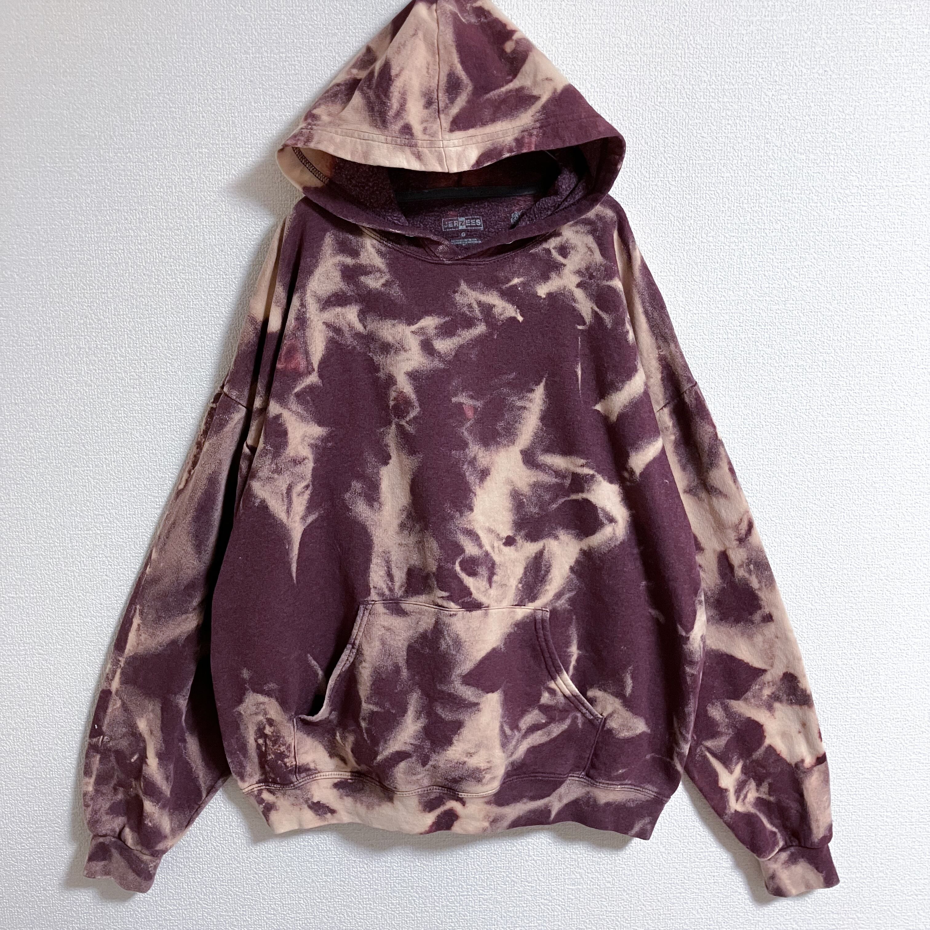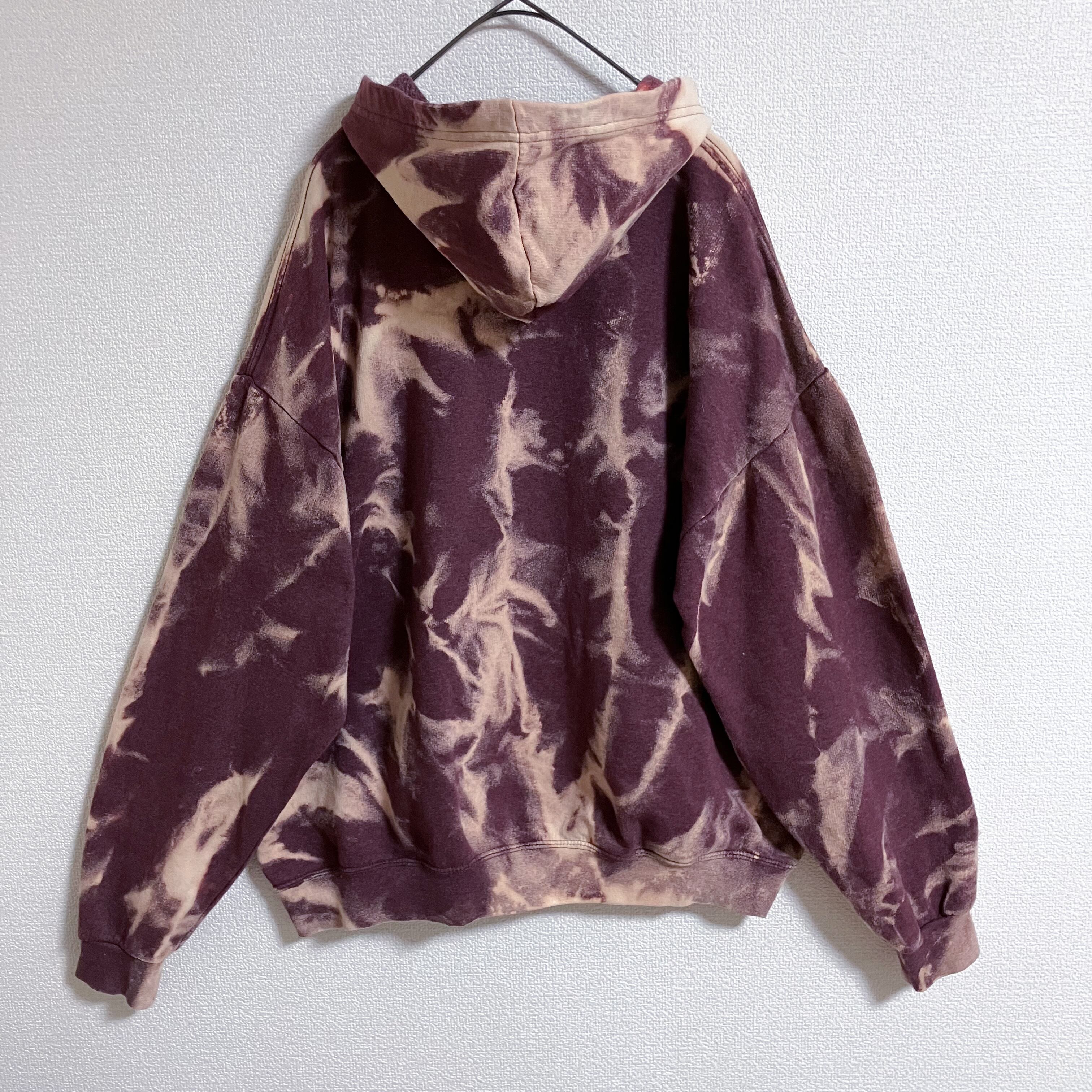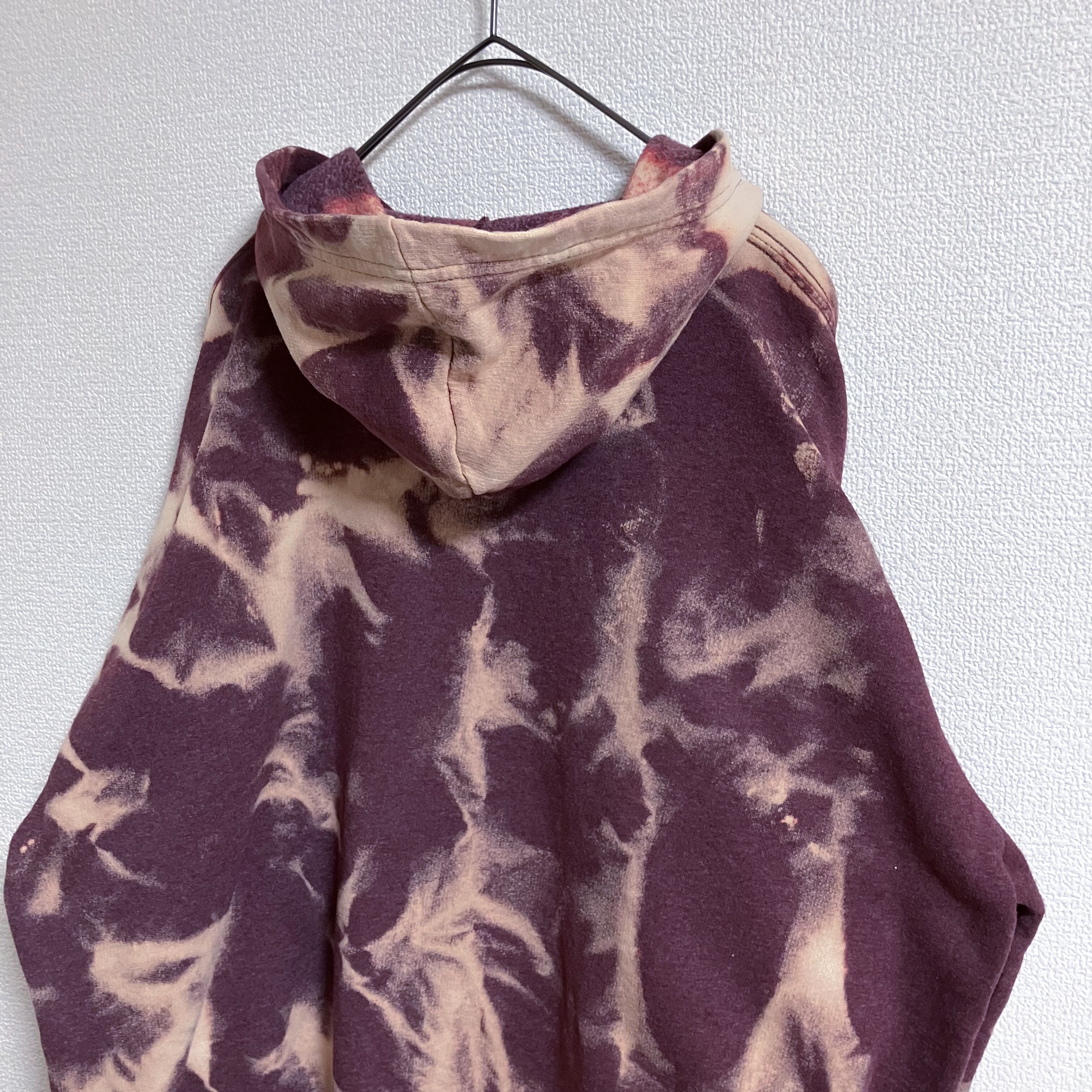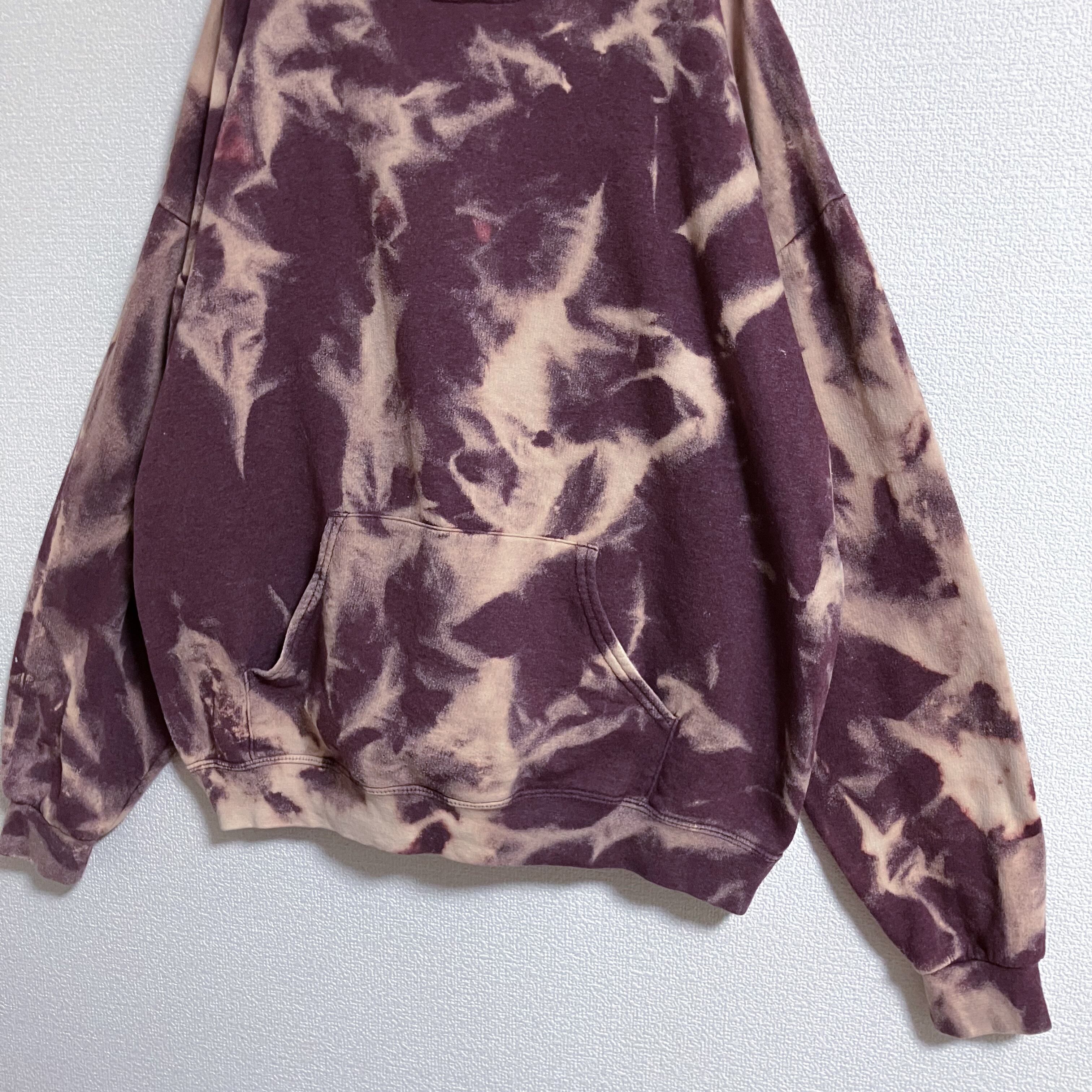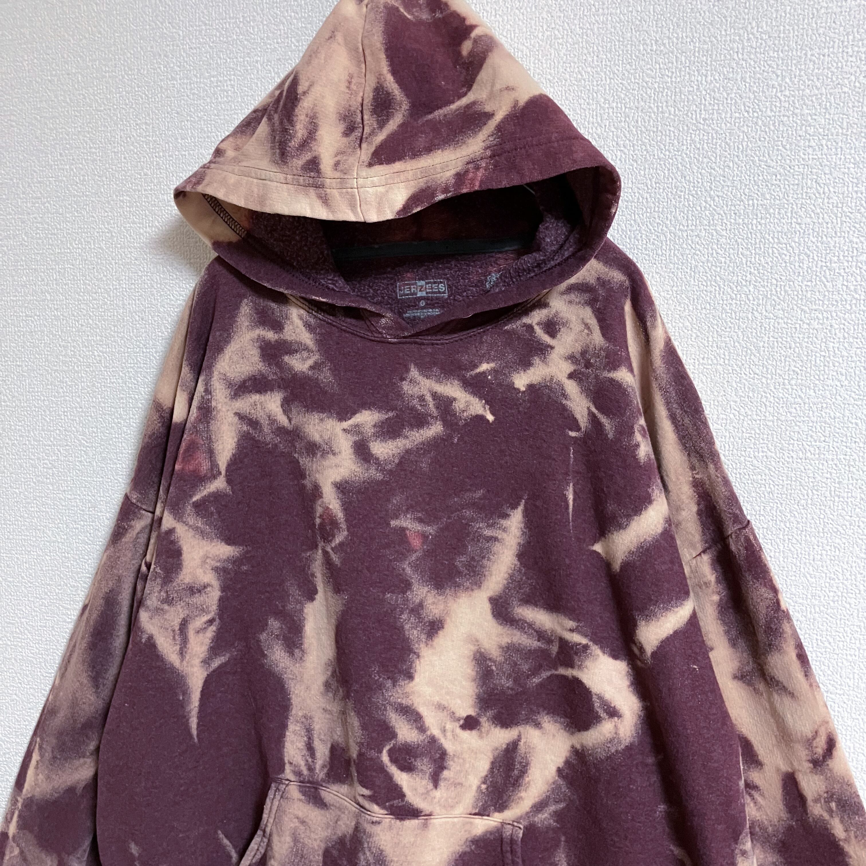 JERZEES ブリーチプルオーバーパーカーL 総柄 タイダイ 赤紫 古着 秋冬