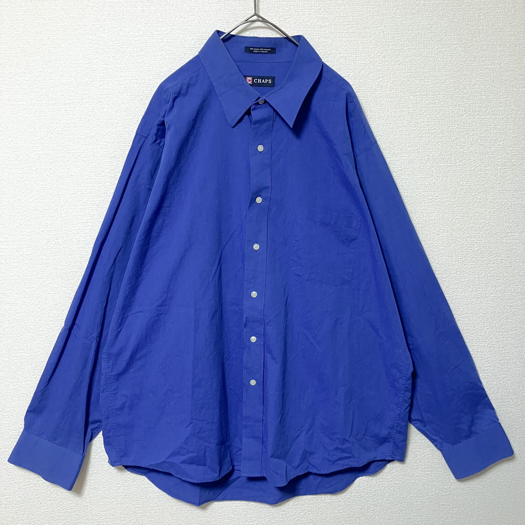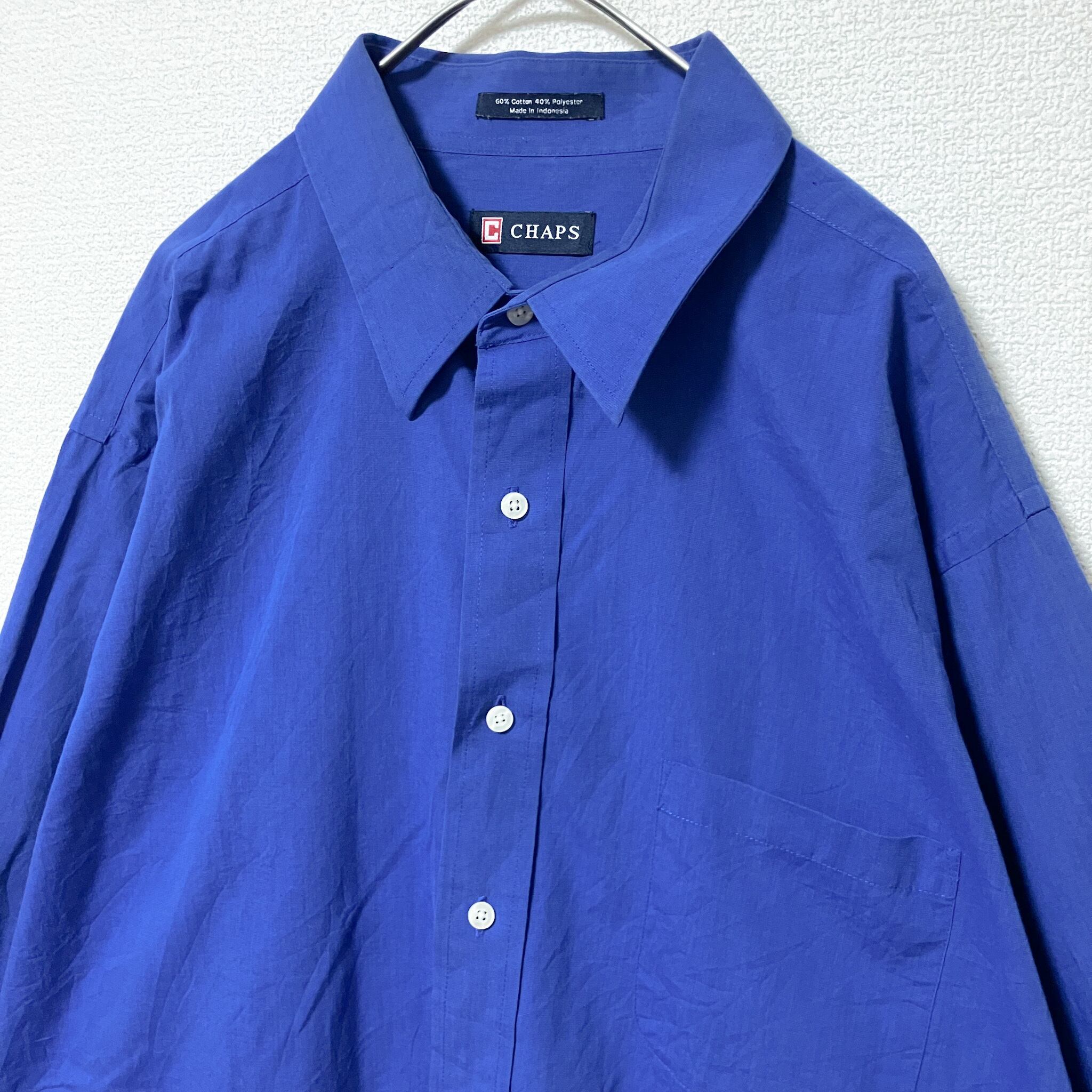 CHAPS 青 長袖シャツ XL メンズ 無地 カジュアル ブランド