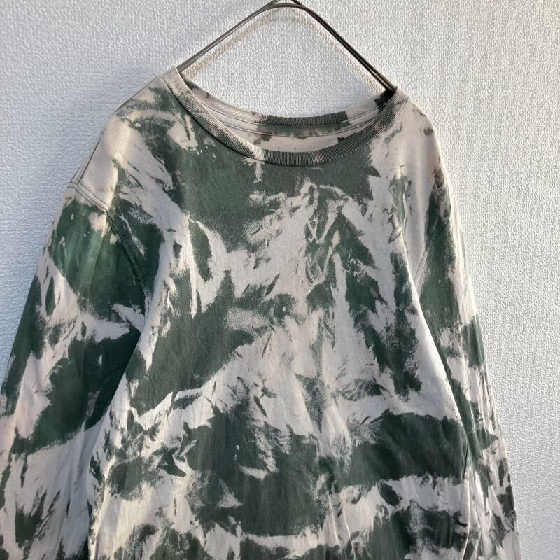 GEORGE 長袖カットソー S カモフラ 迷彩 ロンT 緑 タイダイ ブリーチ