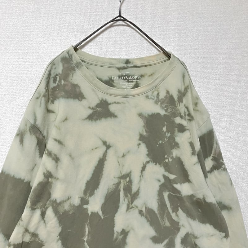 FADED GLORY タイダイ長袖カットソー XL 総柄 グリーン ブリーチ