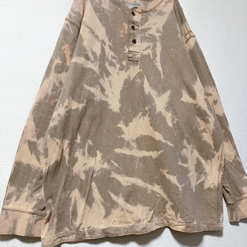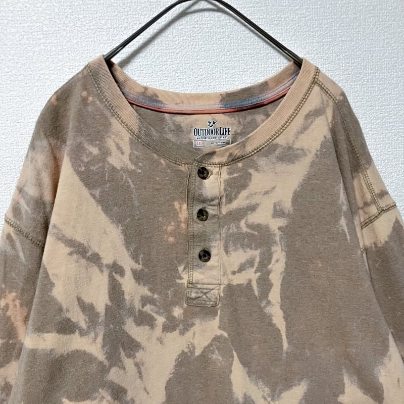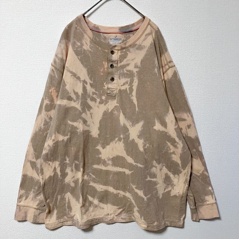 アメリカ(USA)古着「OUTDOOR LIFE」のヘンリーネック長袖Tシャツのブリーチ染めです