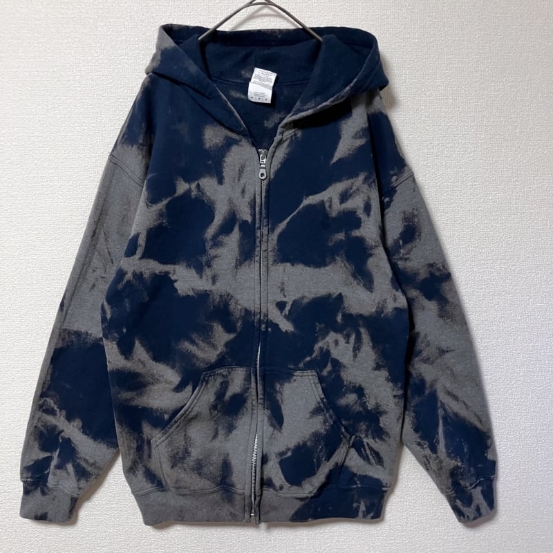 GILDAN タイダイ フルジップパーカーM ネイビー ブリーチ 総柄 トップス