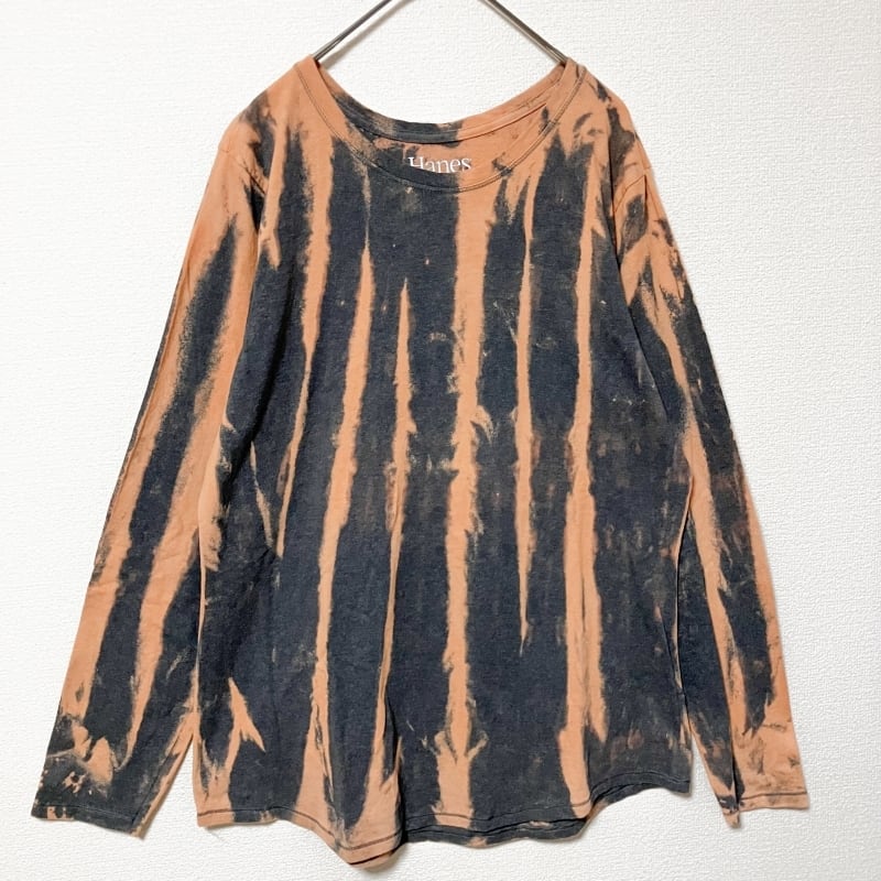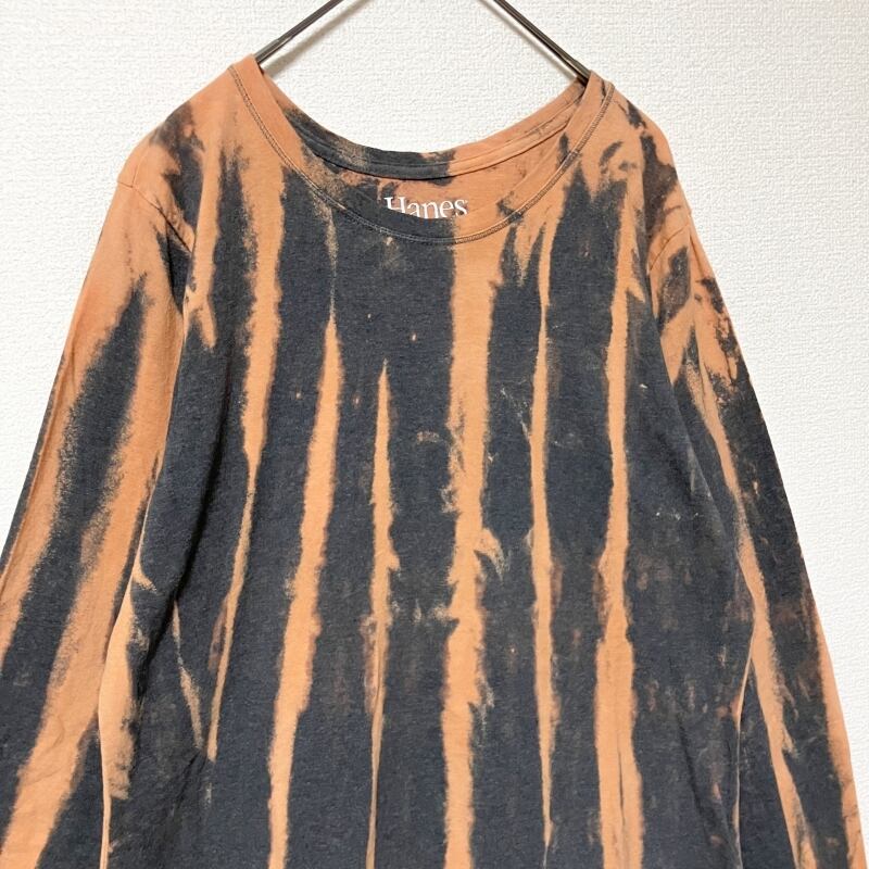 Hanes タイダイ柄 長袖Tシャツ XL ブリーチ ロンT グレー 薄手 古着