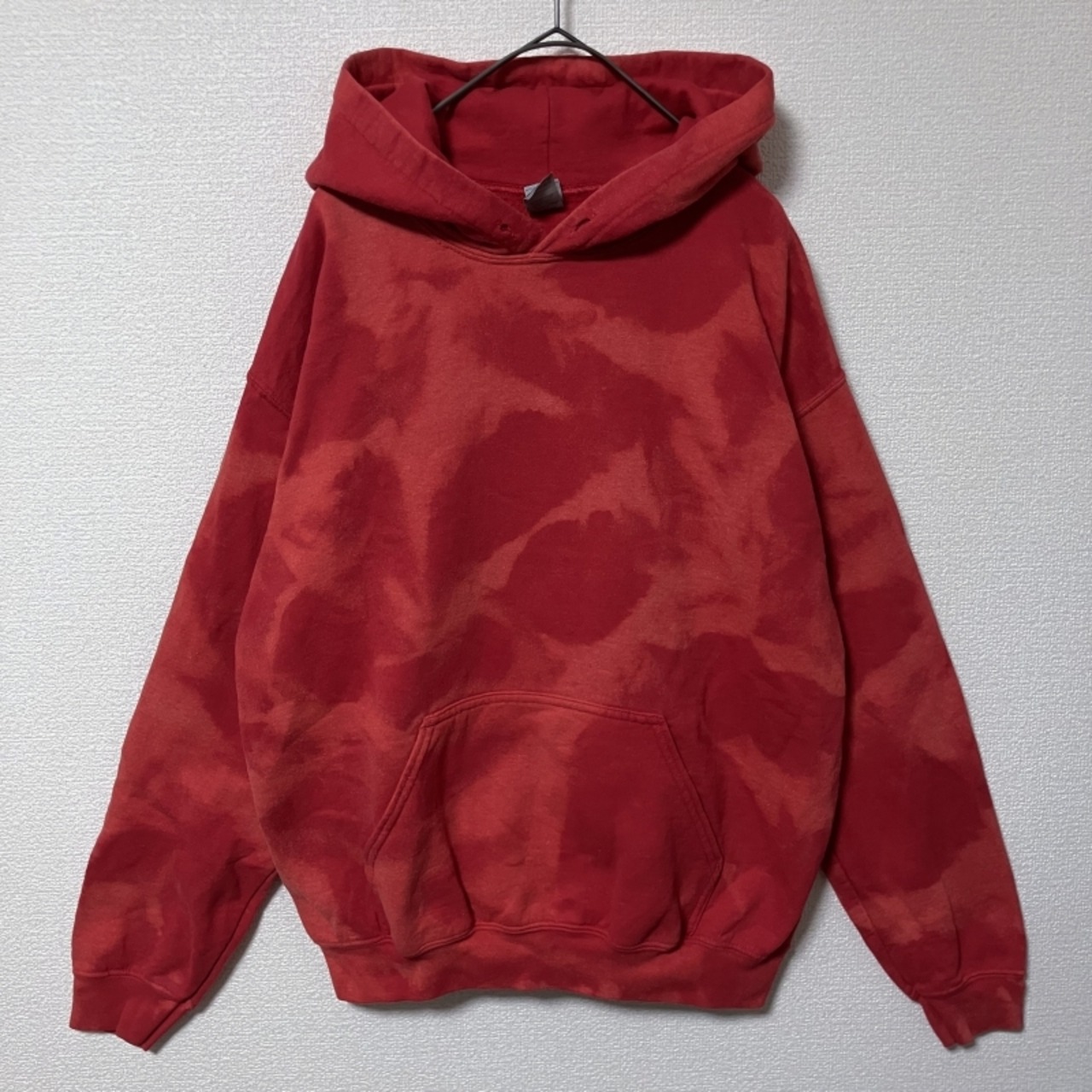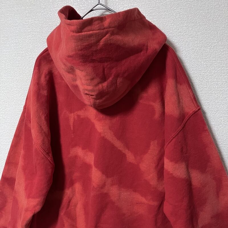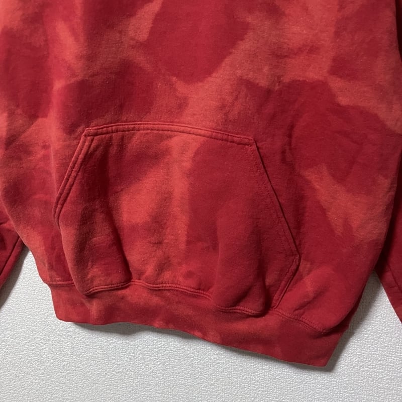 GILDAN タイダイ 総柄 赤 プルオーバーパーカー M ブリーチ トップス