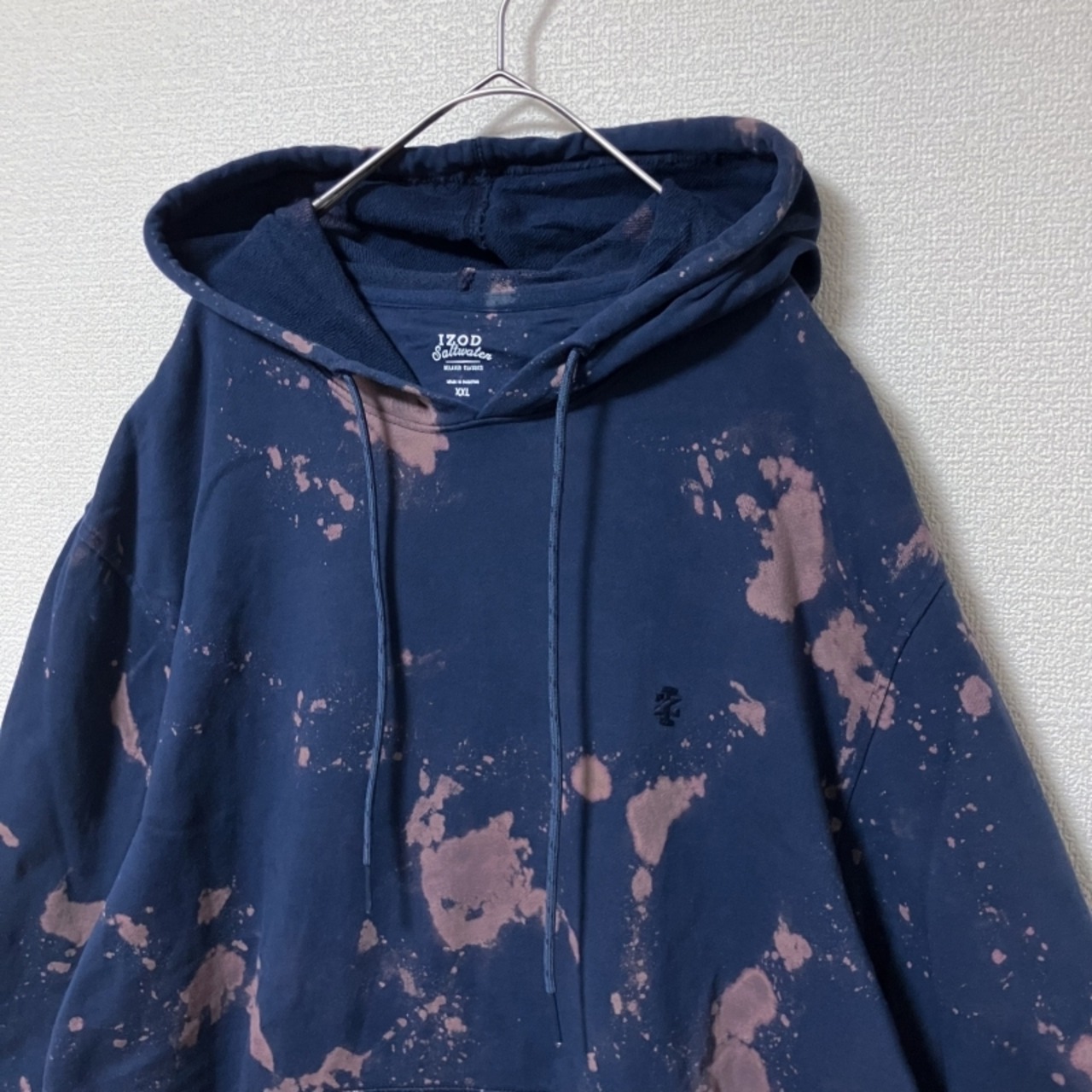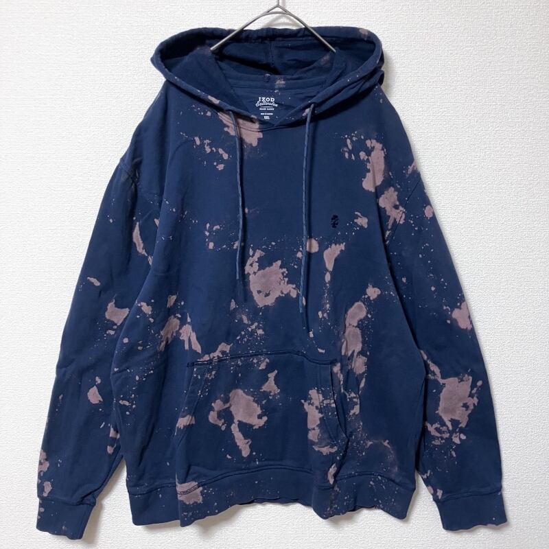 IZOD プルオーバーパーカーXXL ネイビー スプラッター ブリーチ タイダイ