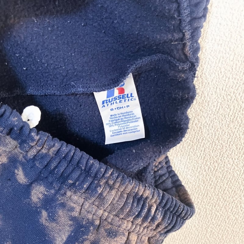 RUSSELL スウェットパンツ タイダイ柄 ブリーチ ネイビー 裏起毛 ロゴ