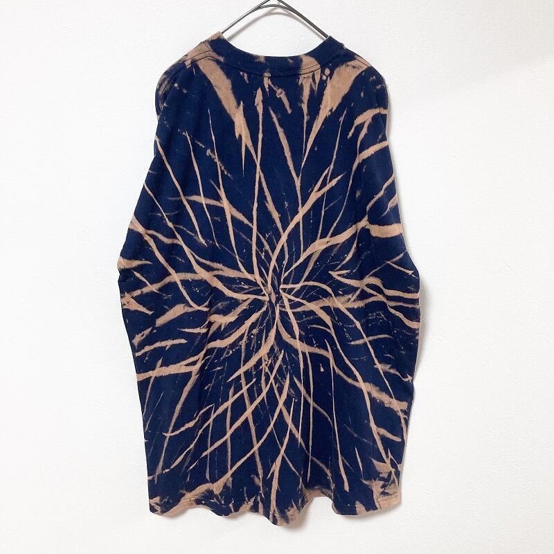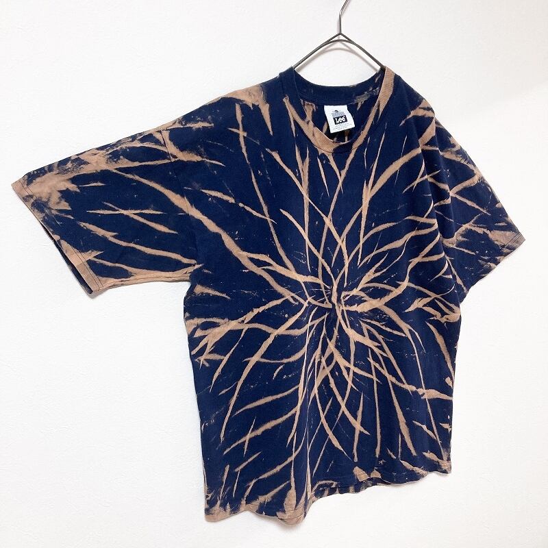 メンズ服タイダイ柄ブリーチ半袖TシャツXL 古着屋 柄物 ストリート 紺 春夏物