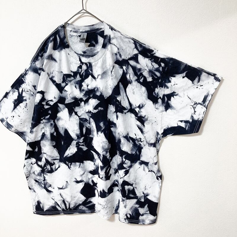 新品未使用品のヘビーウェイト6.0ozコットンクルーネック半袖Tシャツに特殊染料にてタイダイ染めをしました