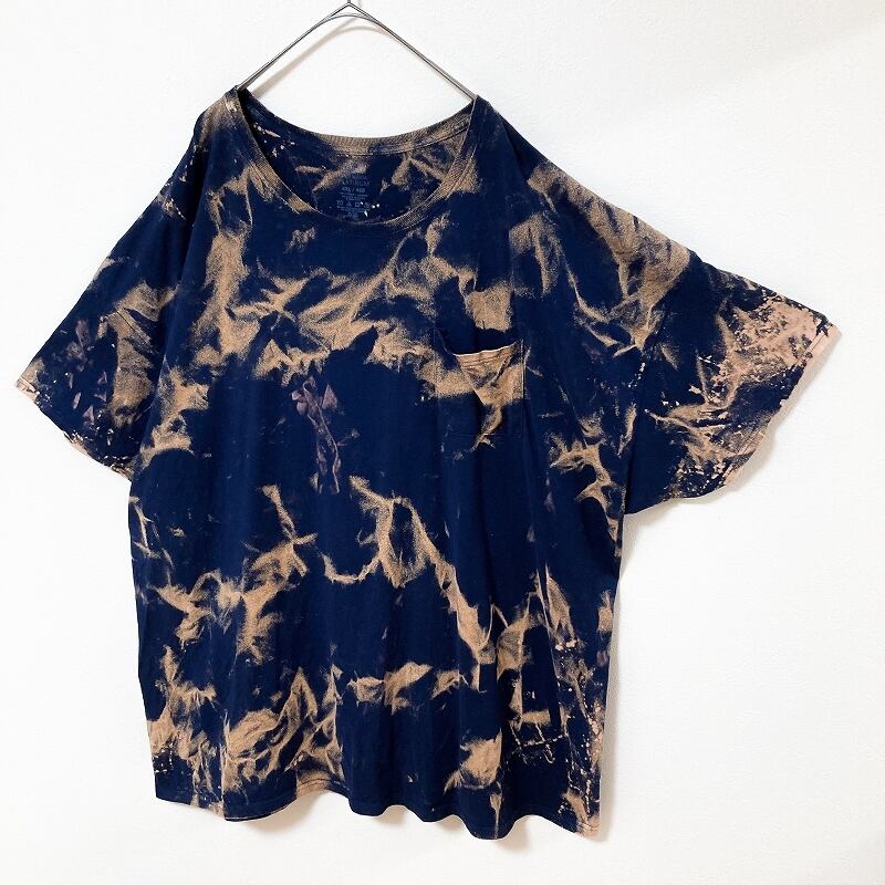 メンズタイダイ柄ブリーチ半袖Tシャツ4XL 古着屋 紺 オーバーサイズ ゆったり