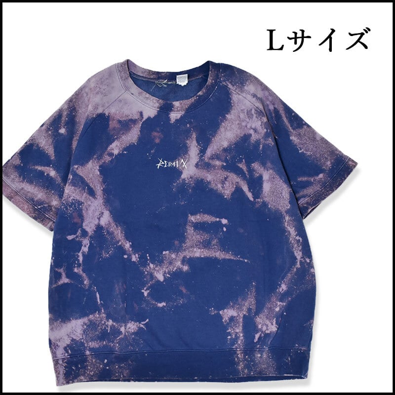メンズタイダイ柄ブリーチ半袖スウェットL 古着屋 トップス ブランド 刺繍 青