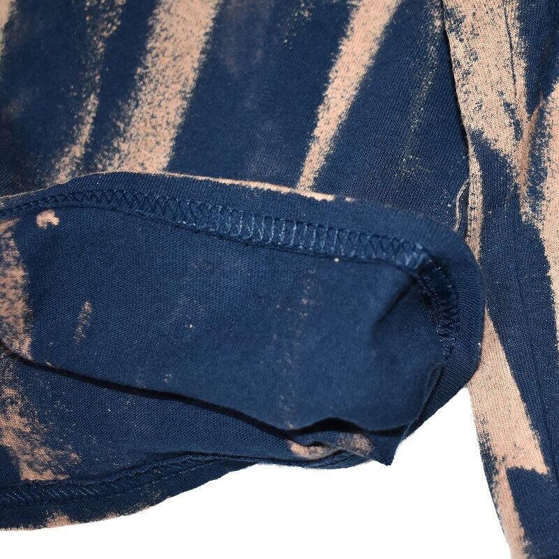 メンズ 新品ブリーチ長袖TシャツXL ロンT 紺 ベージュ 柄 春秋物 ネイビー