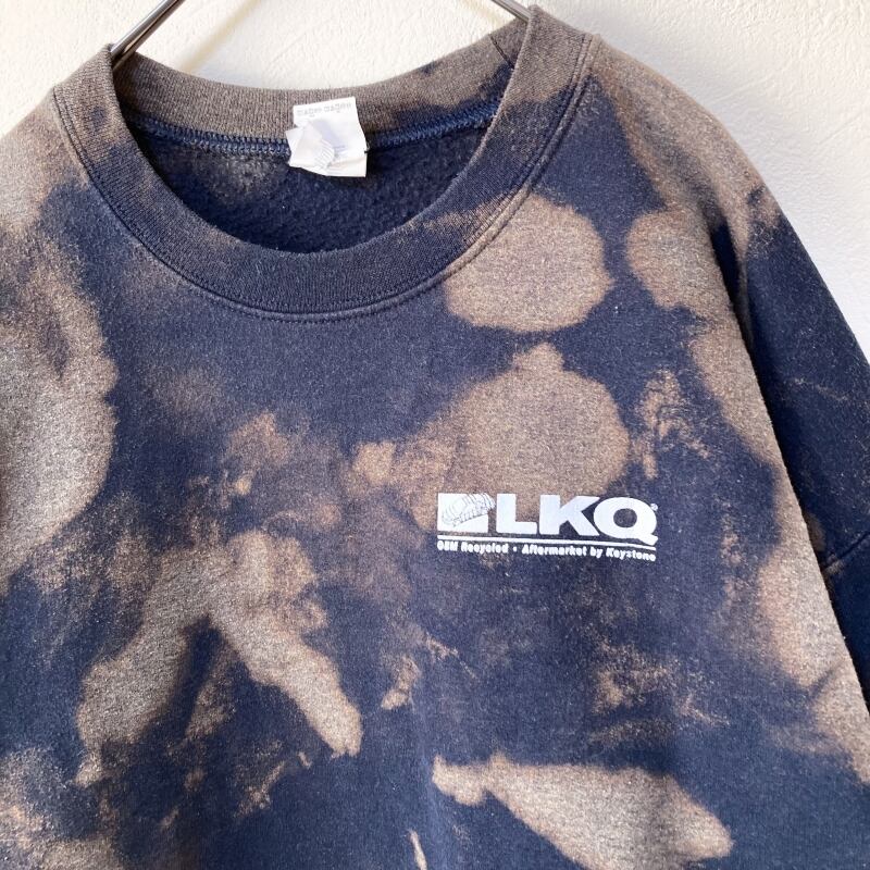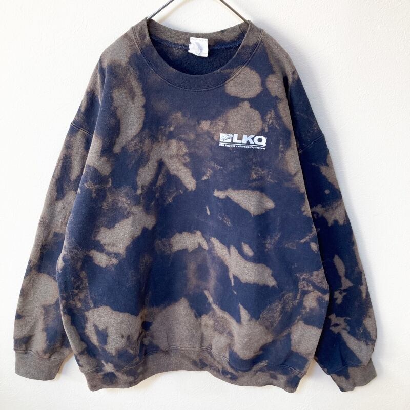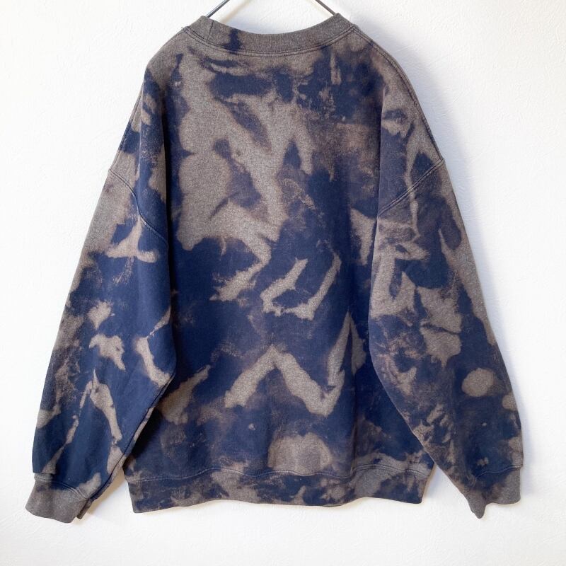 メンズタイダイ柄ブリーチトレーナーL 古着屋 ブランド 裏起毛 プリント ワンポイント ネイビー 紺