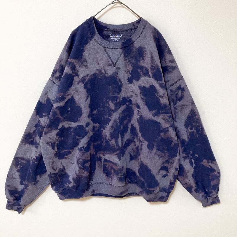 メンズタイダイ柄ブリーチトレーナーXL 古着屋 ブランド 裏起毛 秋冬物 総柄 ゆるだぼ ゆったり 紺 グレー