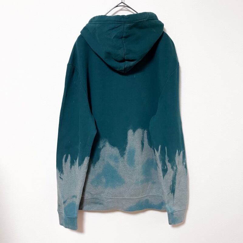 メンズタイダイ柄ブリーチパーカーM 古着屋 ブランド 裏起毛 緑 エスニック