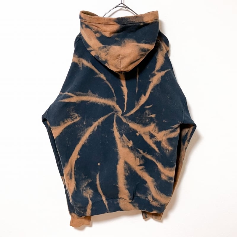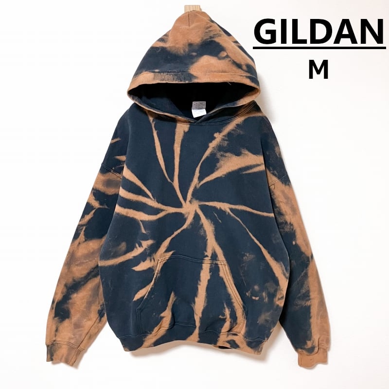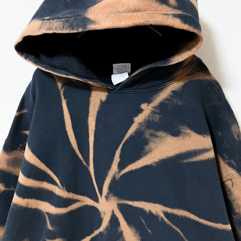 アメリカ(USA)古着「GILDAN(ギルダン)」のプルオーバーパーカーの渦巻き柄のブリーチ染めです